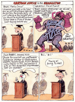 I've never been to a college graduation, but I've been to lots of high school graduations. This is one of my favorite old Almanacs and it's now up on GoComics. I thought of the BC joke first, although Galactus' mortarboard makes me laugh harder.