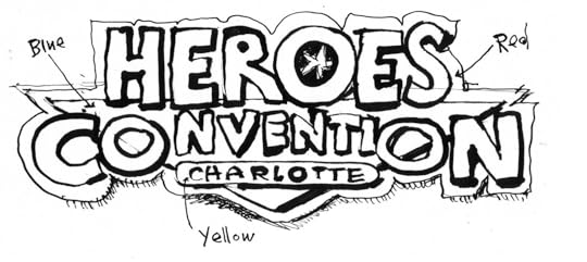 I drew this logo for the blog in 2008, a simpler time, before economic malaise, before newspapers were being sold to internet jackanapes, before my kids heard of X-box 360s, before Deep Brain Stimulation, before Cherrydale Rehab Facility, before Parkinson,s or before anything bad had even been thought of, and logos could proudly flaunt their black-and-whiteness because the designer was lazy.So here's to Heroescon 2014, and all the heroes gathered in Charlotte this weekend. Wish I were there.