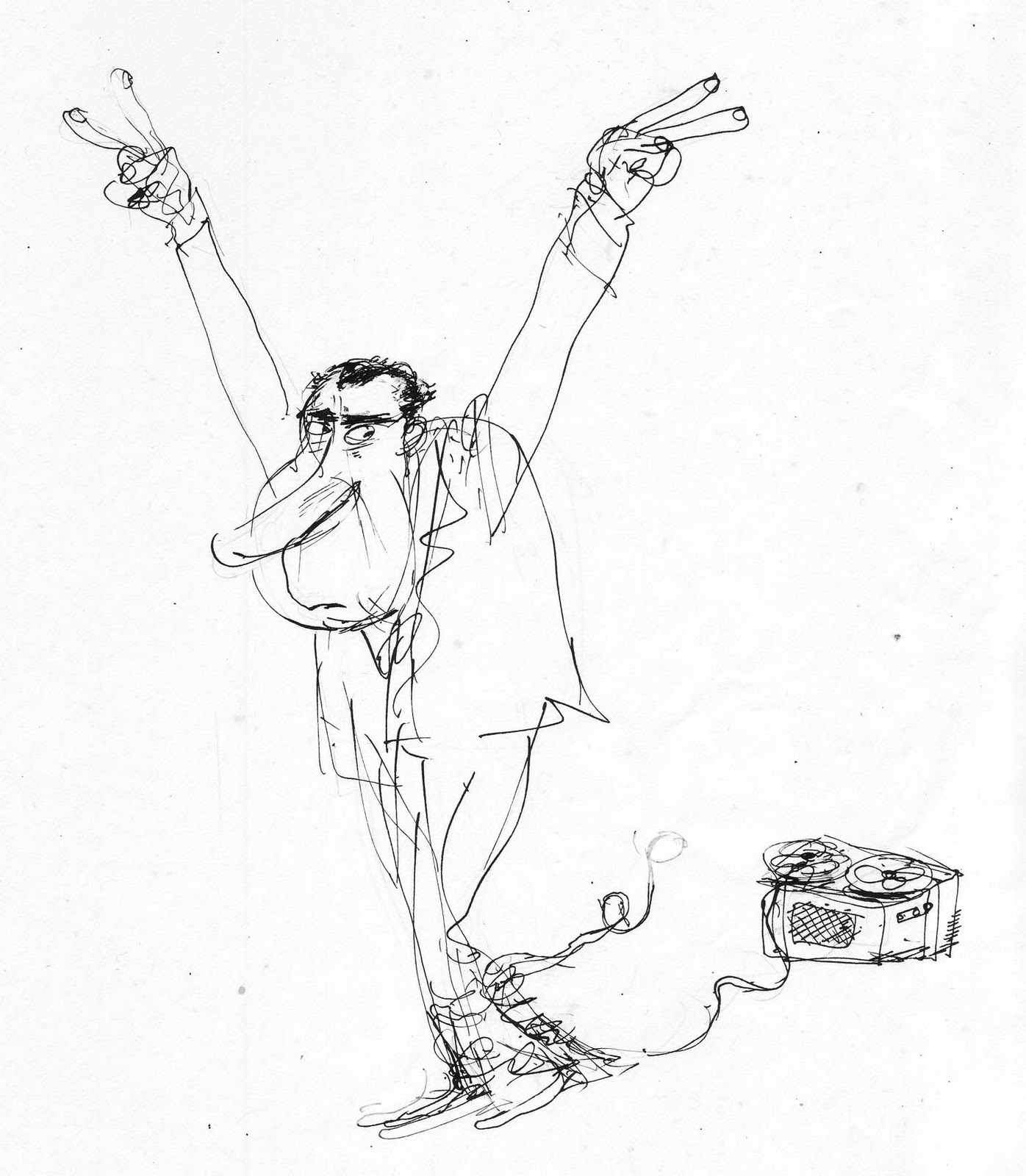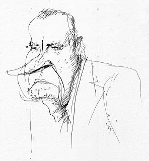 Richard Nixon was the cartoonists' president, so here are ten drawings of him. Most of these are roughs I did for a New Yorker story that ran the year he died.
