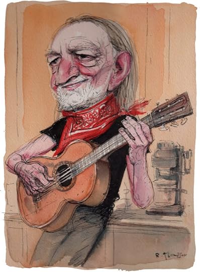 I did this for a profile of Willie Nelson for the New Yorker six or seven years ago. Sadly, they went with a photo instead. The only thing I remember about the job was the art director's anxiety that the coffee maker behind Willie was rendered faithfully, as Willie had one on his tour bus and took its operation quite seriously.