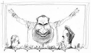 Here's a rough for another NYer story, dealing with the reactions of various Republican politicians to Nixon's passing and his legacy. Pete Wilson and Bob Dole choke up at the end of a Nixon movie.