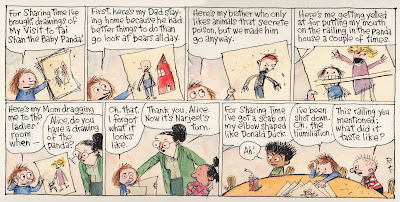 This ran in the Post Magazine in January 2006 when Tai Shan mania gripped DC in a relentless hug. I'd developed an antipathy to pandas for no good reason and about the time the National Zoo was paying the Chinese through the nose to rent a coupla pandas I did a poem in the Almanac trash talking the lumbering brutes. I can't find that drawing, but part of it went "Pandas are boring, tedious and blah, Great big two-tone fuzzy cures for insomnia." It didn't do any good: the Zoo is at it again.