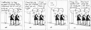 You may be wondering, "How can I best celebrate this festive day?" You might consider:Finding a cartoonist near you and mowing his (or her) lawn, at least the front lawn (especially the hard part with the hill). While you're at it trim his shrubs, so the mailman can find his front door again.I'll bet he needs a haircut pretty bad. Does his house need vacuuming? Well, what are you waiting for?Who left all these dishes in the sink?The cats; somebody feed the cats.Are you handy with a pen? Ink some cartoons for him! You could take him to lunch at the Mexican place down the street, where they're having some no doubt cartoonist-related celebration.For God's sake laugh at his cartoons. If they appear in a newspaper, buy extra copies (or multiple subscriptions, even) and laugh at them too.Is he not posting anything new on his stupid blog and it's driving you crazy? You should send him a cheerful card stuffed with cash to inspire him.Note: if the cartoonist near you is a lady, please substitute "her" for "his". The original of the cartoon reproduced above is in the collection of the fabulous Mr. Jef Mallett, so this is a scan of the Almanac book page. And it's the same one I ran last year, and the year before, if it looks familiar.
