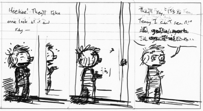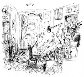 Starting tomorrow, March 26th, I'll be producing Cul de Sac with the assistance of Stacy Curtis. Stacy's a cartoonist, illustrator and printmaker who draws editorial cartoons, comics and illustrations and is now doing mostly children's books (I find children's book illustrators to be uniquely trustworthy). He'll be doing the inking, mostly on the daily Cul de Sacs. He also promises to go out for doughnuts and coffee, a nice gesture but somewhat useless as he lives 700 miles away.Except for freelancing illustration, which is by its nature collaborative, I've never worked with anyone before. Some types of comics are built for this kind of piece-work, notably comic books, which distribute the work among divers hands much the way a medieval studio would. But a comic strip, being small and intensely imagined, usually has just one name on it, usually the guy who started it (though often anonymous craftsmen are involved in writing, drawing, lettering, etc. - ssshh! you didn't hear it from me).
