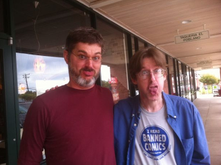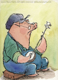 Now that you've committed Chris Sparks' interview to memory you need to do the same with Tom Racine's interview with Stacy Curtis. Stacy spills the beans on his early, violent career as an editorial cartoonist, describes our Clouseau-and-Cato-like working relationship and explains his Banjo Pig Awareness program.