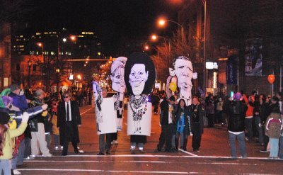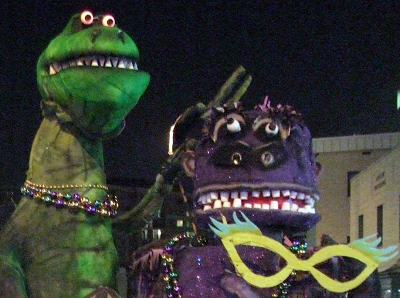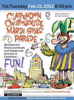 Once again the party-loving burghers of Clarendon are throwing open their streets for the friendliest Mardi Gras parade in, or near, DC. You're invited to come on over and let some bontomps roolay tonight at 8. For fun it's unbeadable! Poster courtesy of Bono Mitchell.Some scenes from previous Mardi Gras parades-
