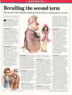 Since we're all wallowing in Bubba nostalgia, what with the Clinton documentary on TV that I didn't watch, I thought I'd put up some old tearsheets of that era. Because I don't know what else to do with them. All are from US News & World Report, except for Kabuki Linda Tripp, who's from the New Yorker.