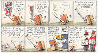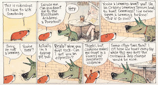 , whose work always appears on the NYT list pretty much soon as it occurs to him. Mo very kindly agreed to take over the strip for a week to give me time to laze around the house and eat store-bought pie.Mo's week of CdS leads the way for a month or so of guest artists, all of whom will make you forget I ever even tried to draw the thing. At least until I show up in a month or so and forcibly remind you. Other luminaries doing Otterloop duty will be Lordly Lincoln Peirce, Superior Stephan Pastis, Mighty Michael Jantze, Cool Corey Pandolph and Keen Ken Fisher *. For a more detailed and informative article about this, please visit Mike Cavna's Comic Riffs blog or a brief article on the size of my feet at Robot 6.