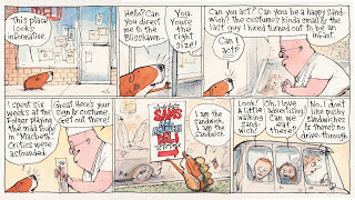 It was right about here that I figured out that Danders is protean by nature; he's mutable, capable of infinite variation, surviving by assimilation and camouflage. Or maybe he's just so bland that he's forever confused for something or someone else. He's such a dull little lump that no one notices he's not what they think he is.This strip cracks me up still, after 8 years. I think it's because he's lost sight of the whole point of his job, and I like his piratical gobbledy-gook.