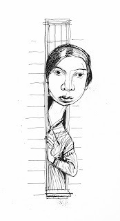 I tried to find this drawing of Robert Burns last week for Burns Day but I looked in all the wrong places. I drew it to illustrate a great book, the Holy Tango of Literature by the polymathical word-sleight-of-handist Francis Heaney. The trick that Francis played here is to take a well known writer and anagramize his or her name into a title from which he spins a parody. Thus Robert Burns becomes "Robber Runts," in which the great Scots poet is bedeviled by "Wee, sneaky, glowrin, vill'nous thiefies" in rhythms so Burnsian that it screams to be read aloud by Craig Ferguson.