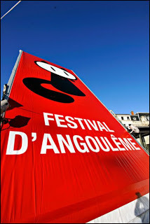 © FIBD, Jorge Fidel Alvarez... then you most likely were there for the now-wrapped-up 39th annual Festival International de la Bande Desinée. For three giddy days high-ranking cartoonists are borne on floats through Angouleme's medieval streets and the populace cheers, throws flowers, smothers them with kisses and makes them hold symposiums. From the photos I've seen, these are people with interesting faces and they can wear hats and scarves with great aplomb.