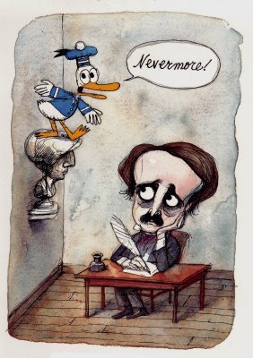 , an honor that brings with it all kinds of responsibilities, like putting together most of this year's show. So in 2012 he was honored for a lifetime of work in comics' inky vineyards with a career-spanning show of his original art; pages and pages of Maus, New Yorker covers, Garbage Pail Kids, Raw Magazine, etc. And, with the able help of Bill Kartalopoulos, Spiegelman curated a Private Museum of cartoons that inspired him or that tickles his fancy. In this show were gems like Justin Green's epochal Binky Brown Meets the Holy Virgin Mary, works by Rodolphe Töpffer, Chris Ware, Walt Kelly, George Herriman, Bill Watterson, Daniel Clowes, Jack Davis, Loinel Feininger, Ernie Bushmiller, Caran d'Ache, Patrick McDonnell, Los Bros, Hernandez, and on and on. In fact, the list went on so far it reached me, and the cartoon below was slipped into the show.