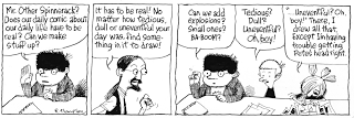 Although Pete might get too tightly focused on the boring, dull and uneventful part and produce a sluggish comic. This can drag a comic strip down and scare away readers, as I'm slowly realizing.