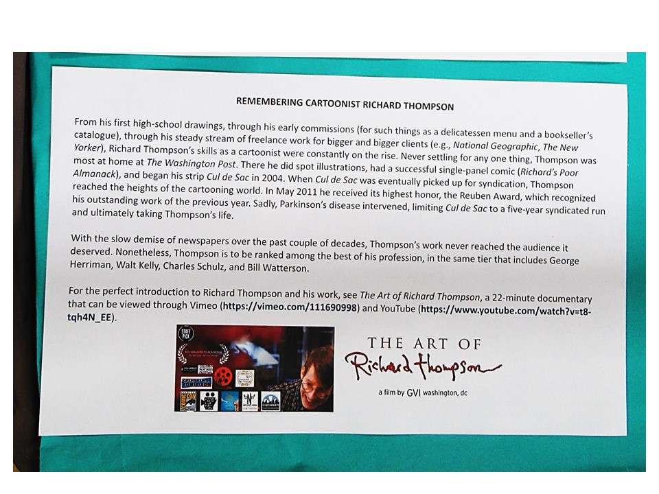 A small exhibit honoring Richard Thompson can be seen at the West Ashley Library in Charleston, South Carolina, through the end of October.