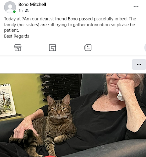 Local artist Bono Mitchell, long time-friend and employer of cartoonist Richard Thompson via Bono-Tom studio, has passed away according to her nurse on Facebook.