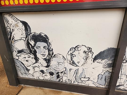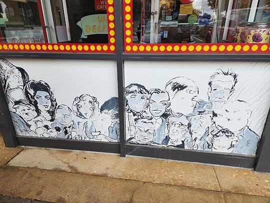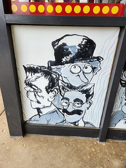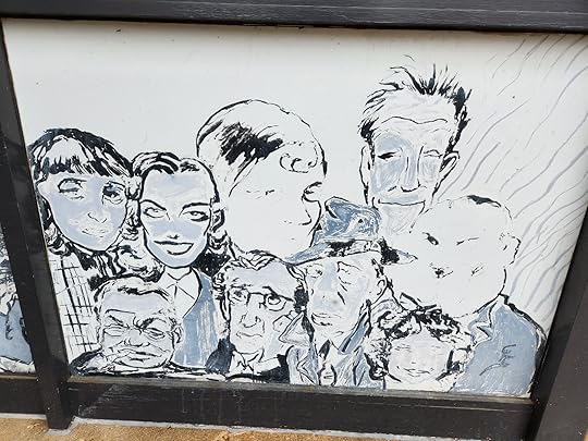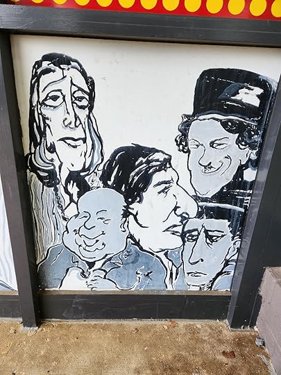 "These were done by Richard for the original Gaithersburg location of Celebrity Delly. When they closed the Gaithersburg shop, they moved the artwork down to the Fairfax County location. He said it was his first professional job and he thinks he was paid in sandwiches." says Scott Stewart who's working on a book of his caricatures. As you can see, these are becoming weathered.