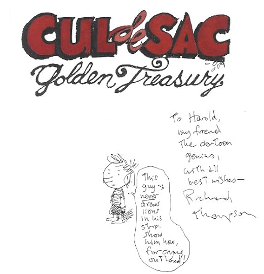 Coming soon! Compleating Cul de Sac, second expanded edition! 80 pages more than the 1st edition. It's the perfect Thanksgiving gift! Building on the original 2016 edition (designed by Richard's friend Bono Mitchell), editor Mike Rhode and layout designer Barbara Sutliff added additional material done by Richard as dedicaces in his books, more interviews, and the CDS children's theater play, in addition to the over 80 original CDS strips he left out of The Complete Cul de Sac.