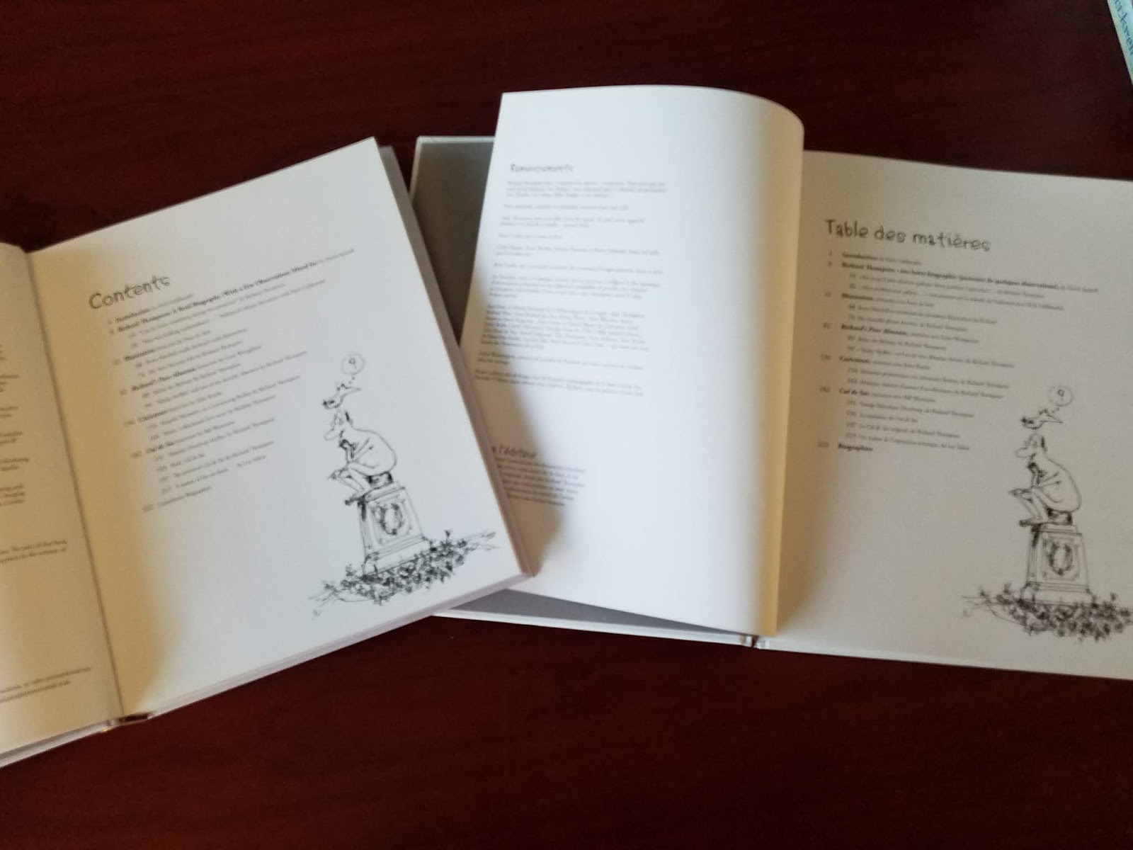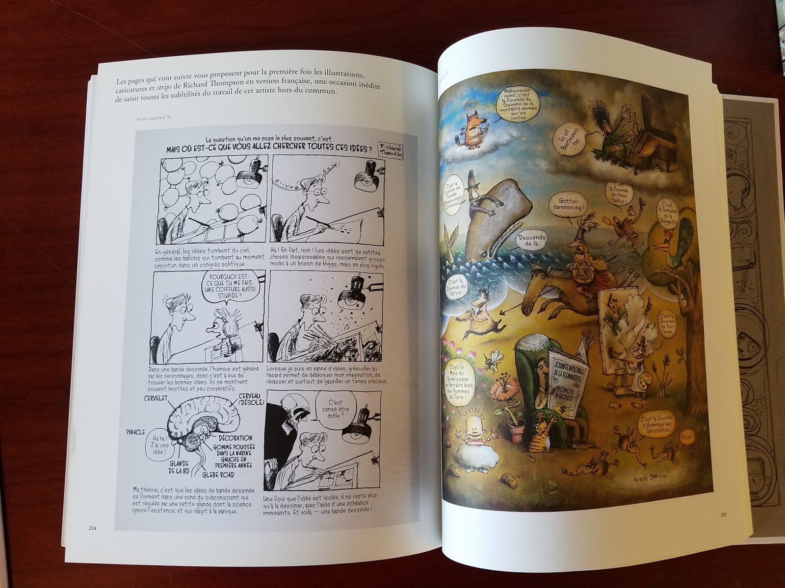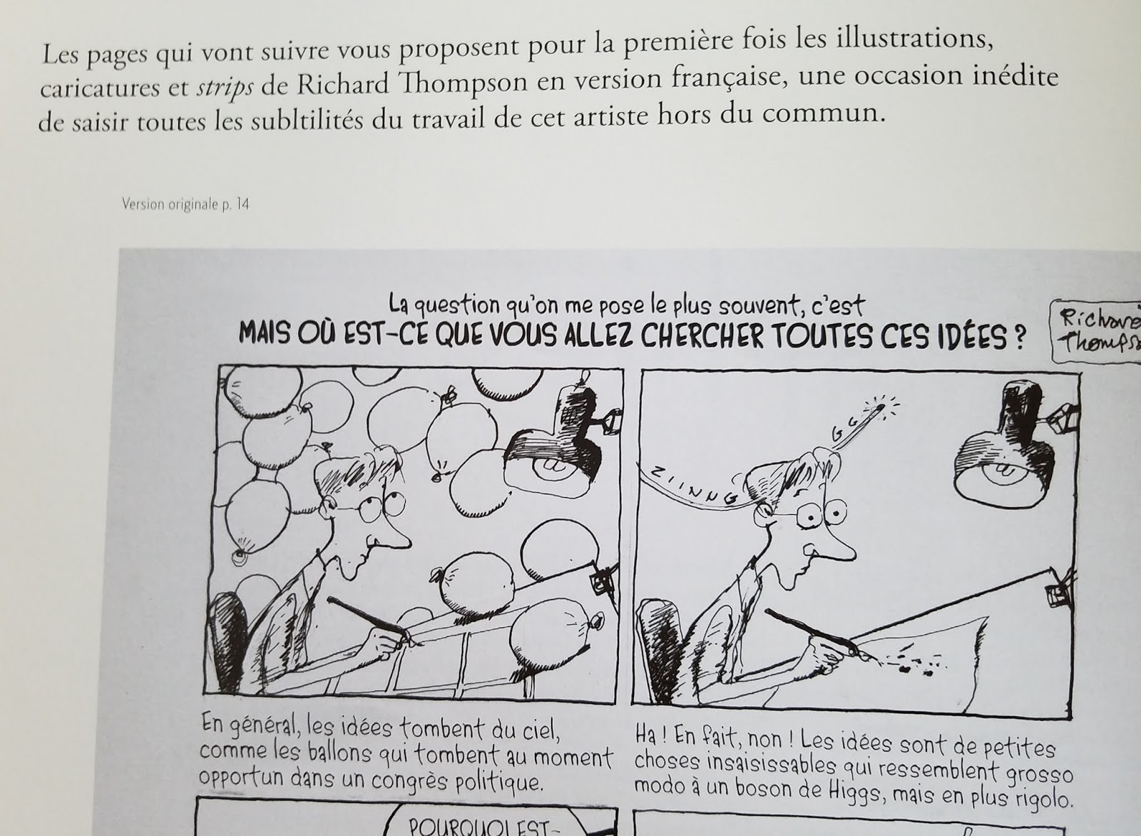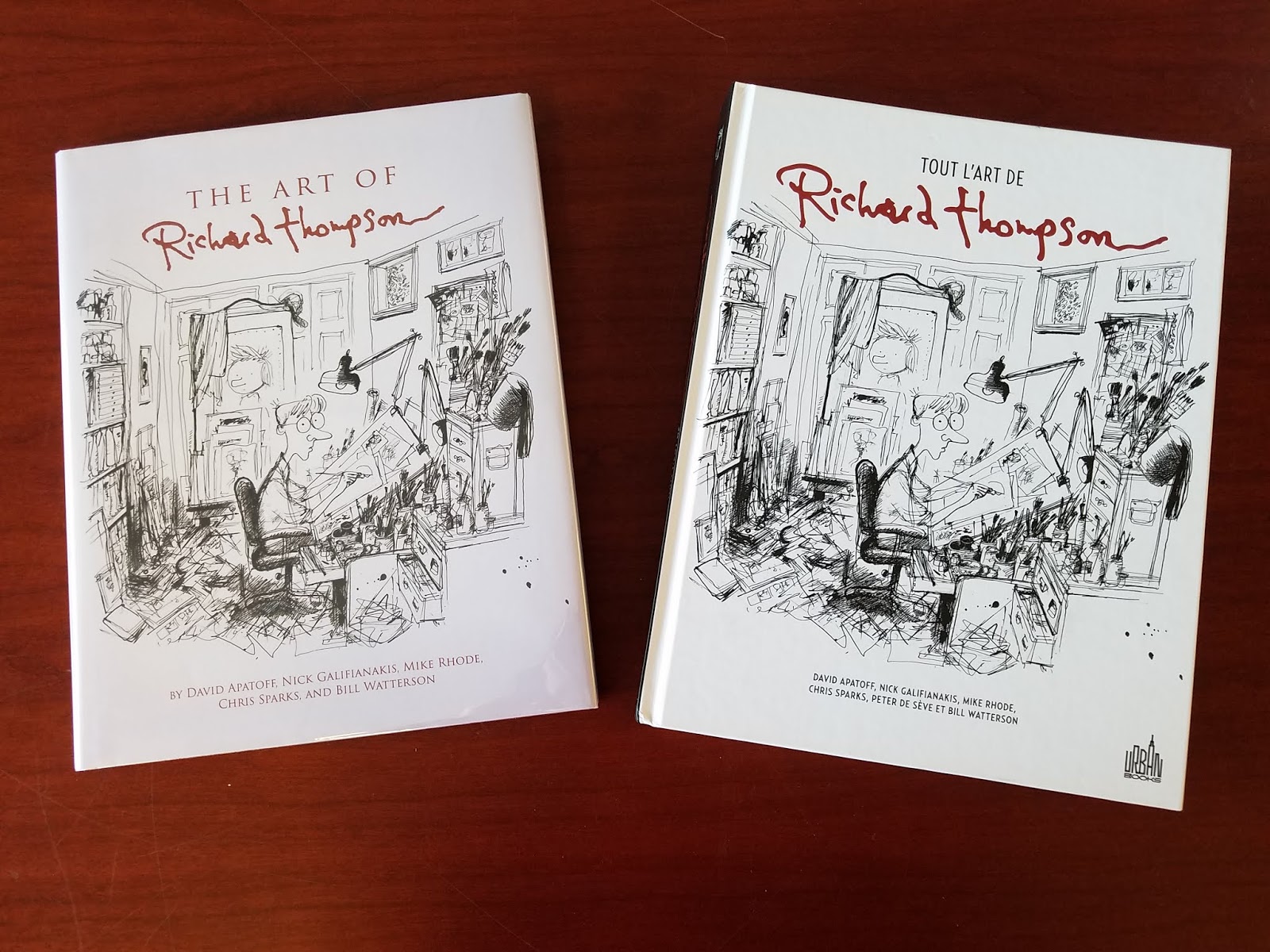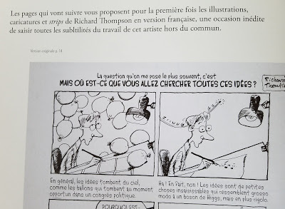 As of last fall, The Art of Richard Thompson is available in French (in Europe at least) from Urban Comics of Paris. They have done an excellent job on the book production. Cul de Sac is also reprinted by them in three volumes. The American version is sold out from Andrews McMeel. The Incomplete Art of Why Things Are (The Richard Thompson Library Volume 1) is still currently available.