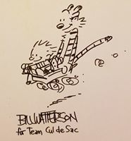 Chris Sparks For folks asking me about the Bill Watterson art for The Michael J Fox Foundation/ Team Cul de Sac. Feel free to email me at teamculdesac@gmail.com for other questions.