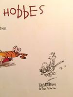 Bill Watterson contributes a signed with a doodle in a hardcover of the Complete Calvin and Hobbes to Team Cul de Sac for our Heroescon Drink and Draw auction. A sketch from Bill is beyond very rare. We appreciate his continued support in helping us to raise money for the Michael J Fox Foundation for research in honor of our friend Richard Thompson. (Remember, you can donate at any time). Please visit our booth at Heroescon and come out to our drink and draw at the Westin ballroom on Friday night,the 15th of June. We will probably do remote bidding for those unable to attend in person