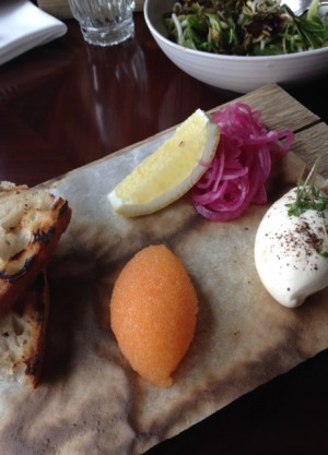 ”Jag vill att du ska känna dig ompysslad”, sa jag och beställde in löjrom åt oss båda. Amenjagdör så gott.
