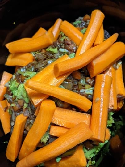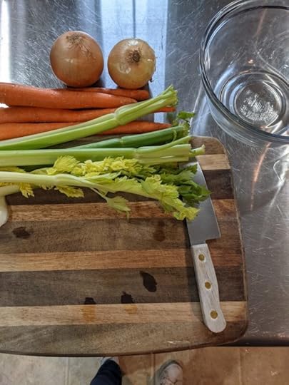 This recipe calls for two batches of carrots and celery. The first is to help build mire poix, which a blend of carrots, celery and onions, which will build the flavor of your meal. The second, set aside for now.
