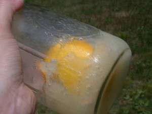 If you use a wide-mouth jar, you can put the lemon halves right in for a more authentic shake-up. If not, you can cut the lemon into smaller pieces after you’ve juiced it thoroughly. Make sure it has a leak-proof lid. This replaces the potential disaster of the tall-glass-and-large-paper-cup shaking method used in the carnival and fair production.