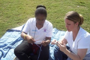 Out enjoying Stitch 'N Pitch at the local ballpark with my knitsibs