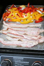 If you don't want the bacon, you can grill bell peppers and onion using the foil pack method.