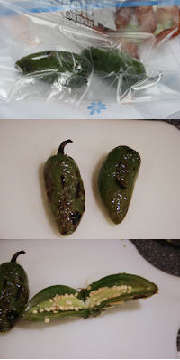 Turn the jalapenos occasionally. When the skin just starts to blacken, remove the peppers from the grill and place them in a zippered plastic bag. The steam will loosen the skin to make peeling the peppers easier. Before serving, remove the outer skin, slice in half, and use a knife to scrape out the ribs and seeds. This gets rid of most of the heat, leaving a fabulous roasted jalapeno flavor.
