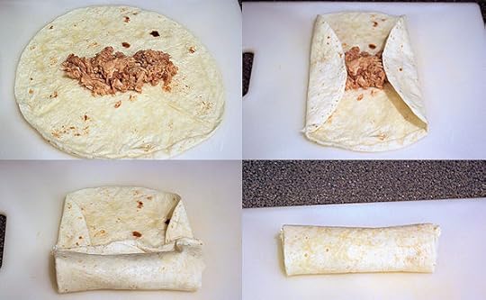 Fill 6 tortillas with the chicken mixture. Fold into burritos.