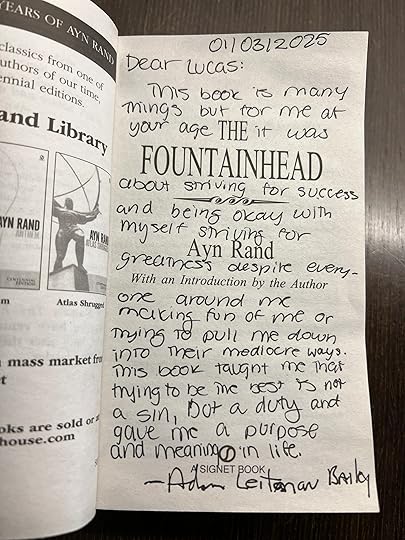 This was one of my most inspirational coming of age books entering college. I explain why in the inscription to the young man.