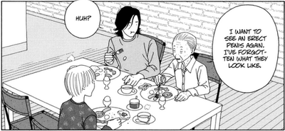 I'm actually surprised I love this manga so much. Normally this sort of thing would irritate the HELL out of me! First off, the art isn't very pretty. I don't like how Ebine Yamaji draws frontal faces--somehow they all look like frogs. But because the artwork is so simplistic, it forces the reader to focus on the story. And after a while, the simple art style grows on you.