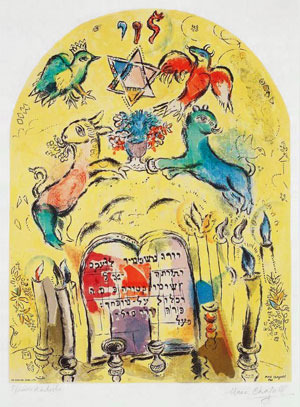 Nice try, but ketubahs, even ones stylized after the works of Marc Chagall, include detailed writing. This one just has the two Latin words and the potential for something written on the Ten Commandments-type plaque.