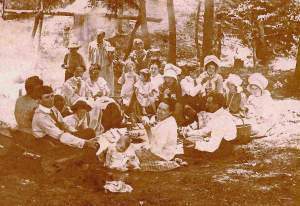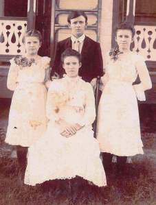 I know I’m dealing with relatives here. The three Hanks girls’ older half-sister, Isabella Hanks, married TJ Posey. Frances and Permelia married brothers TR Dunn and Ben Dunn. I’ve already mentioned the Bell connection. One of the women in this photo may be my great-grandmother and another may possibly be her mother, Louezer Dial Bell Hanks Ezell.