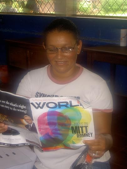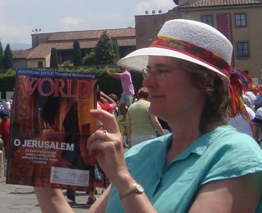The fun, however, of finding an incongruous photo returned when World Magazine began to include a photo of readers with the magazine in unusual spots. I was on it in a flash and have hauled World Magazine to four different continents. It's become a joke in the family: "Where's Mom and her magazine?"