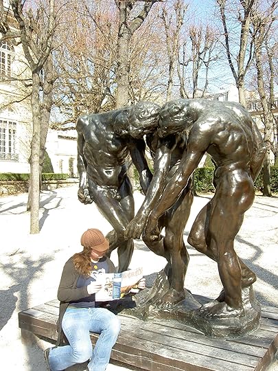 My daughter got into the act at the Rodin Museum. We're missing the fun shot of her giving a statue a close-up, but we do have her in the fits of despair out in the garden, fortunately with something to read . . .