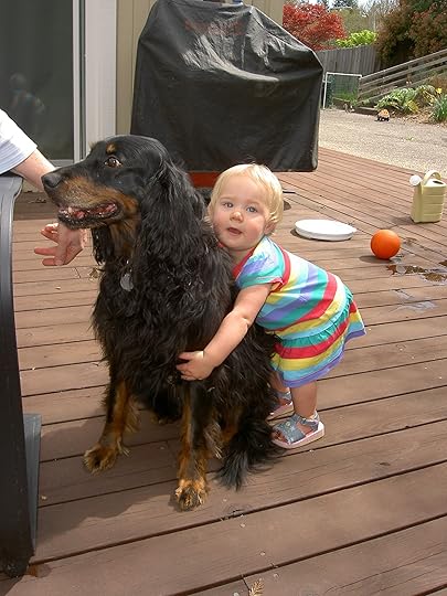 Of course Suzie still follows the toddler around–she smells interesting after a meal.