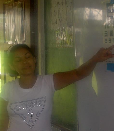 Sometimes the numbers from the auto-refractor, or John's observation, indicated a far greater problem than the need for spectacles. Fortunately, we had an optometrist with us from Managua, Dolores Jarquin.
