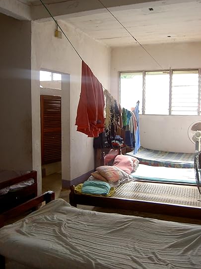 A refrigerator is available for the food women bring with them–mostly fruits and vegetables–or that provided by the home. Everyone in this part of the world eats a lot of plantains and pinco de gallo: rice and beans–which together make a complete protein. They don't bring much with them, so laundry is not onerous. Everything is hand washed and hung on the line to dry.