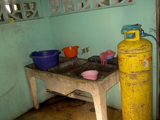 Cooking in that hot climate is done outside, with the rest of the kitchen a simple counter with sink and stove.
