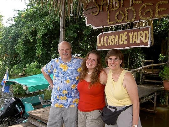 We flew to Managua on TACA airlines and thence to San Carlos at the mouth (the boca) of the Rio San Juan in a twelve-seater plane. An hour-long boat ride took us to Sabalos Lodge, a cluster of huts looking like the Swiss Family Robinson Treehouse at Disneyland. We stayed there five nights.