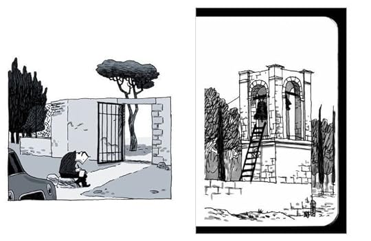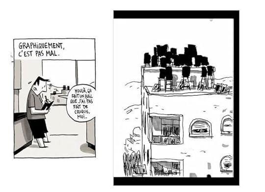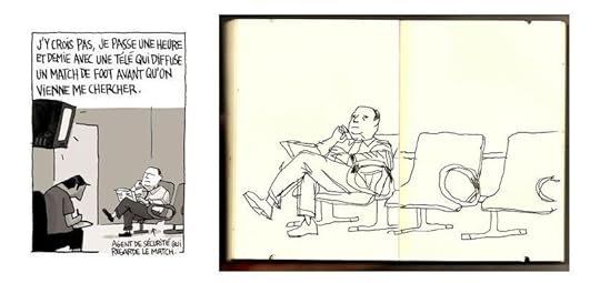 Il y a beaucoup de cases dans mon dernier album où je suis en train de dessiner (en tout 33). J'ai pensé que ce serait intéressant de les extraire et de mettre en vis-à-vis les croquis que j'ai réalisés pendant ces moments précis.