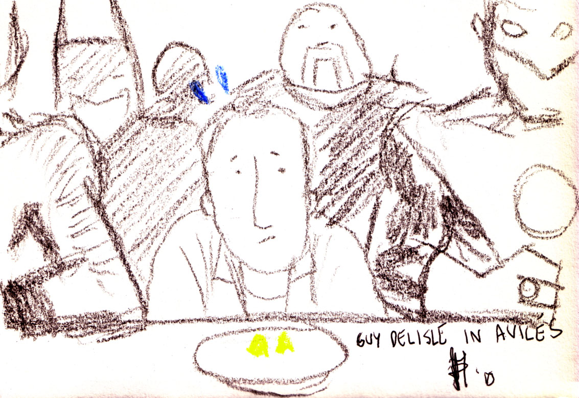 J'ai appris cette expression espagnol qui correspondait bien à ma situation durant le XV festival d'Avilès en Asturies (Espagne). Parmi les auteurs invités, j'étais le seul à ne pas faire du comics américain. Ça ne m'a pas empêché de passer un bon moment et de rencontrer quelques auteurs locaux. Notamment Jordi Pastor qui m'a croqué lors d'un repas.