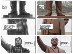 Un jeune couple Deemer et Woo ont eu comme projet de se payer une visite touristique en Corée du Nord et de prendre un maximum de photos qui correspondent aux cases de ma bande dessinée.