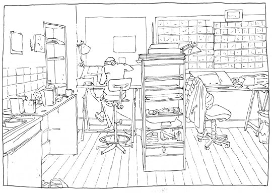 Il y avait Nicolas de Crécy qui travaillait sur son premier Bibendum. Il y avait aussi Sylvain Chomet qui travaillait sur son premier projet d'animation. Il était aidé de Pénélope que l'on peut voir ici de dos. Si je ne m'abuse, c'était le storyboard de La vieille dame...