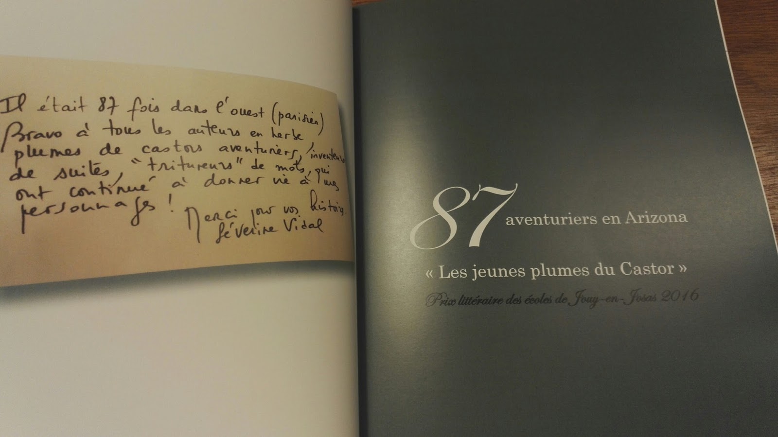 Un beau projet autour de mon roman choisi par la mairie pour ce premier prix "Jeunes plumes de castors". Le livret est particulièrement réussi, beau papier, belle typo.