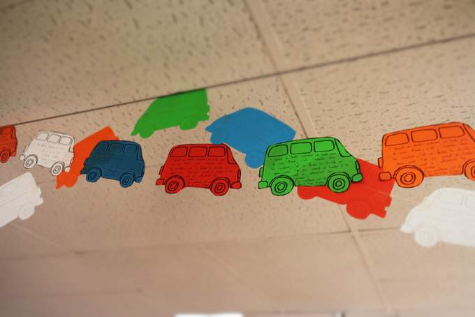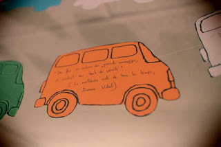 sur chaque van, une citation d'un de mes livres écrite à la main ...