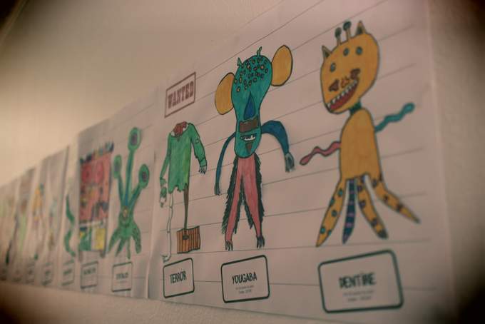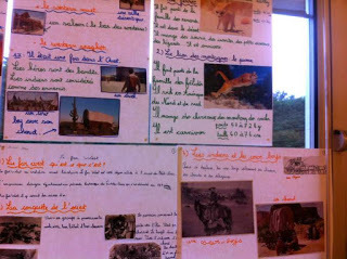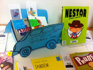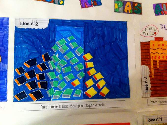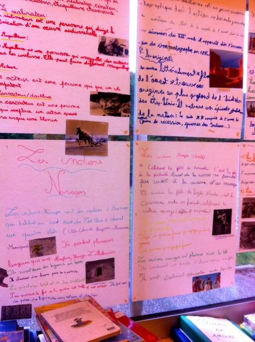 Parce qu'avant la première rencontre scolaire avec les CE2-CM2 de l'école Pépinière, j'ai découvert que les murs de la salle étaient recouverts de travaux d'élèves ... faits à partir de leurs lectures (nombreuses !)