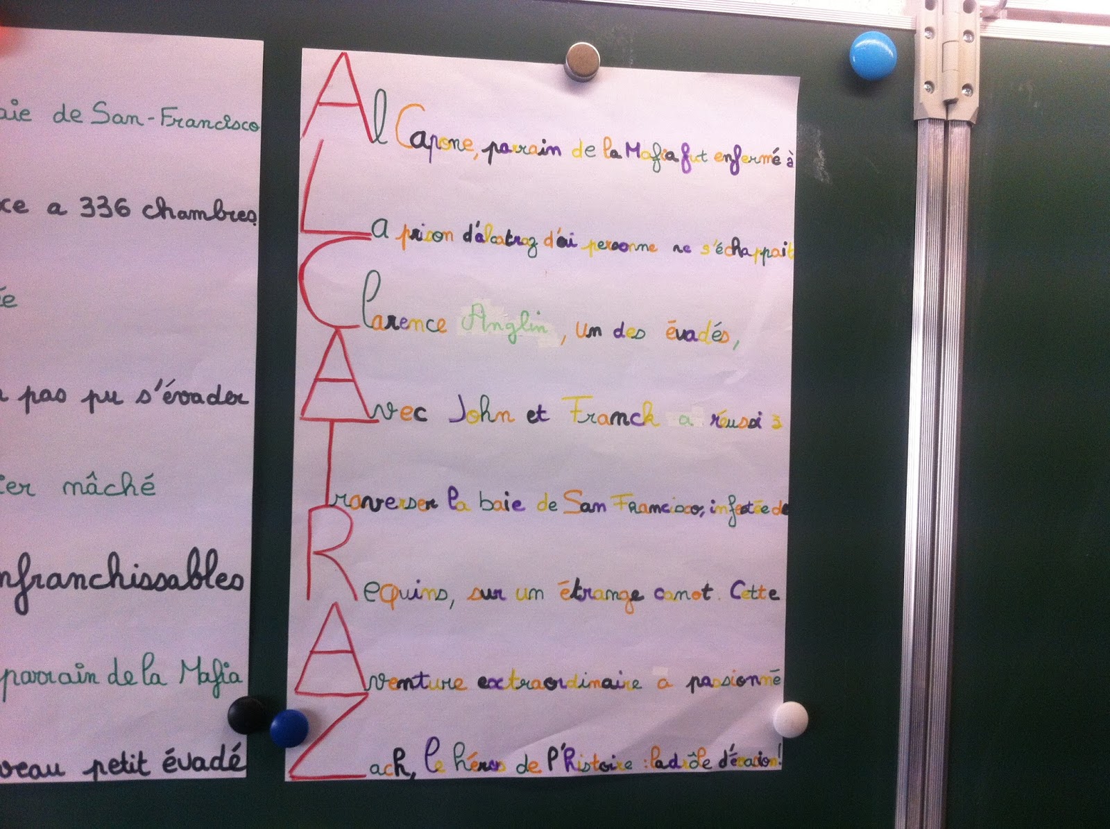 A Boisemont, les élèves savaient accueillir, avec un mirador d'Alcatraz en bâtonnets de glace, des acrostiches, des dessins et des drapeaux ...